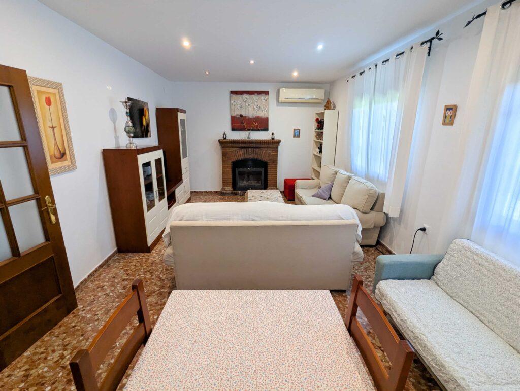 La casa está distribuida en un amplio y luminoso salón comedor, con chimenea y A/A, con espacio suficiente para diferenciar zona de estar y zona de comedor. Se encuentra totalmente amueblado y equipado.