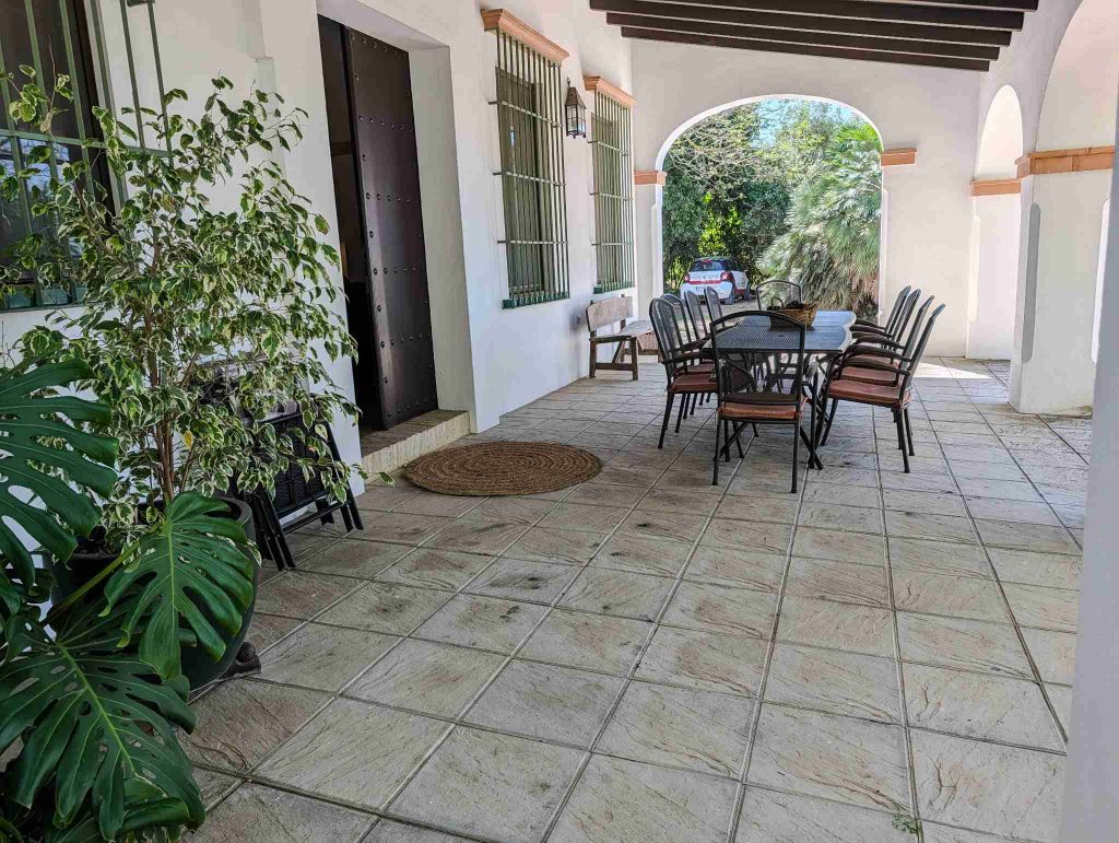 La vivienda, de unos 140 m² en una sola planta, está rodeada por agradables porches con arcos, que invitan a relajarse y disfrutar del entorno en cualquier momento del día. Su orientación sur garantiza muchas horas de luz natural y bonitas vistas al campo.